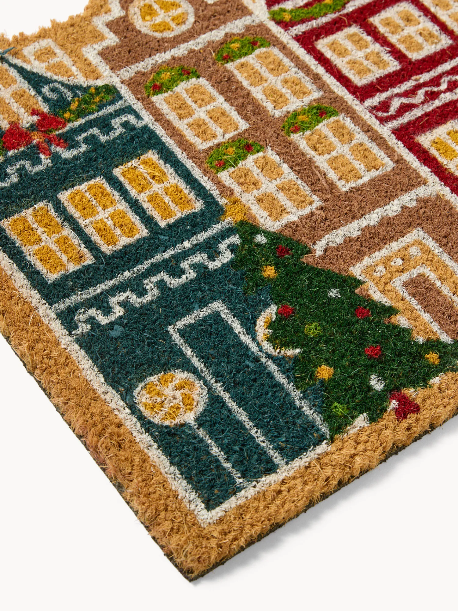 - Zerbino sagomato con stampa casette. Accogli i tuoi ospiti con un tocco di originalità grazie a questo zerbino in cocco naturale decorato con una simpatica stampa di geometrica. Realizzato in fibra di cocco, resistente e durevole. Base in PVC antiscivolo per una maggiore stabilità.