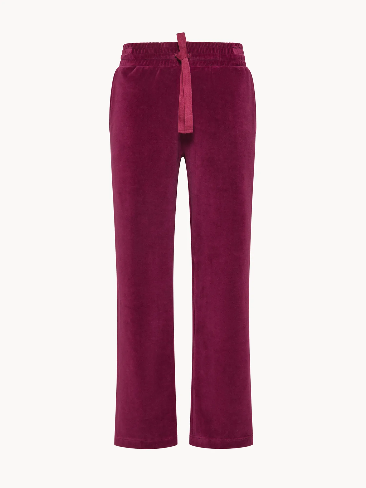 - Pantaloni lunghi dal taglio a palazzo, realizzati in morbido velluto, piacevole al tatto. La vita è elasticizzata e dotata di coulisse regolabile per una vestibilità personalizzata e ancora più confortevole. Il taglio comodo e rilassato li rende perfetti per le giornate in casa e i momenti di relax. Ideali da abbinare alla maglia coordinata per un look casalingo elegante e confortevole.