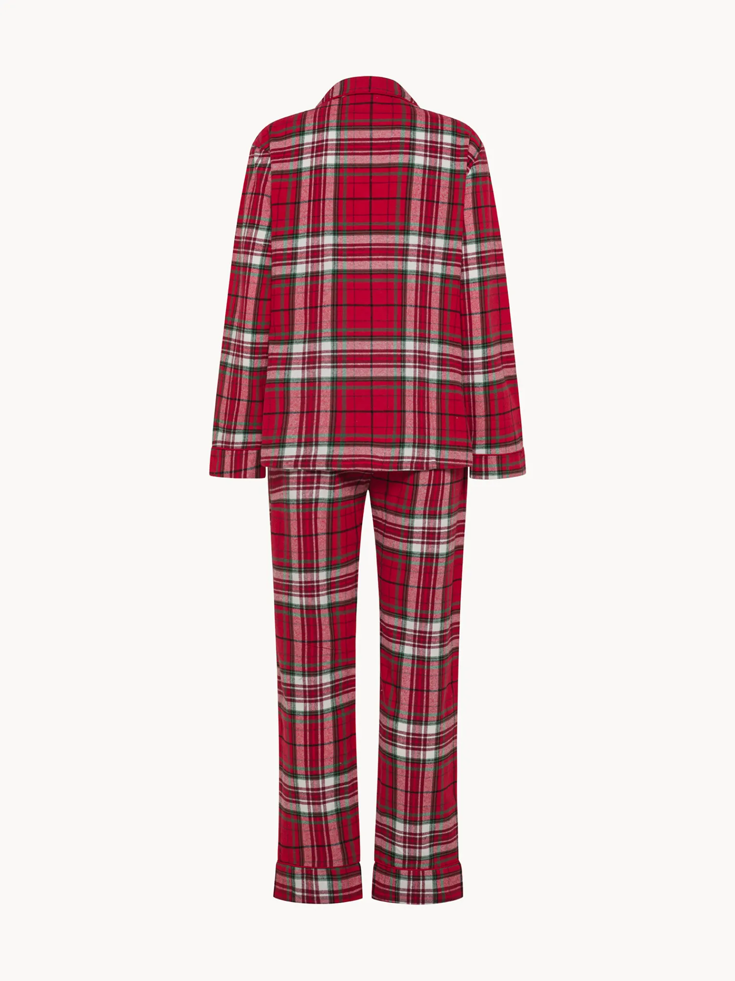 - Pigiama realizzato in morbido cotone di flanella con motivo tartan classico. La maglia presenta una chiusura con bottoni, mentre i pantaloni sono dotati di vita elasticizzata per una vestibilità comoda e confortevole. Un design tradizionale che unisce stile e praticità, perfetto per le tue giornate invernali all’insegna del relax.