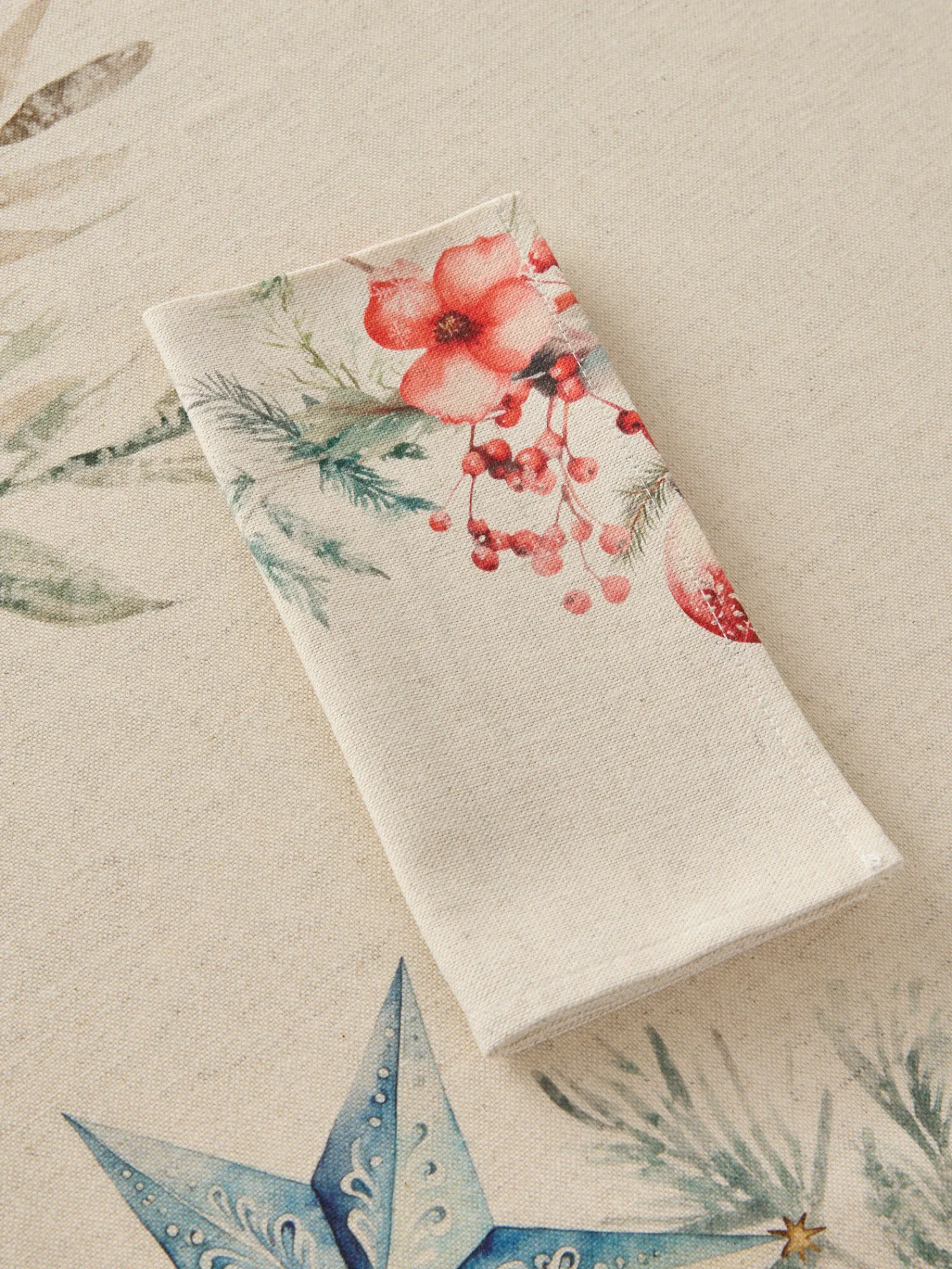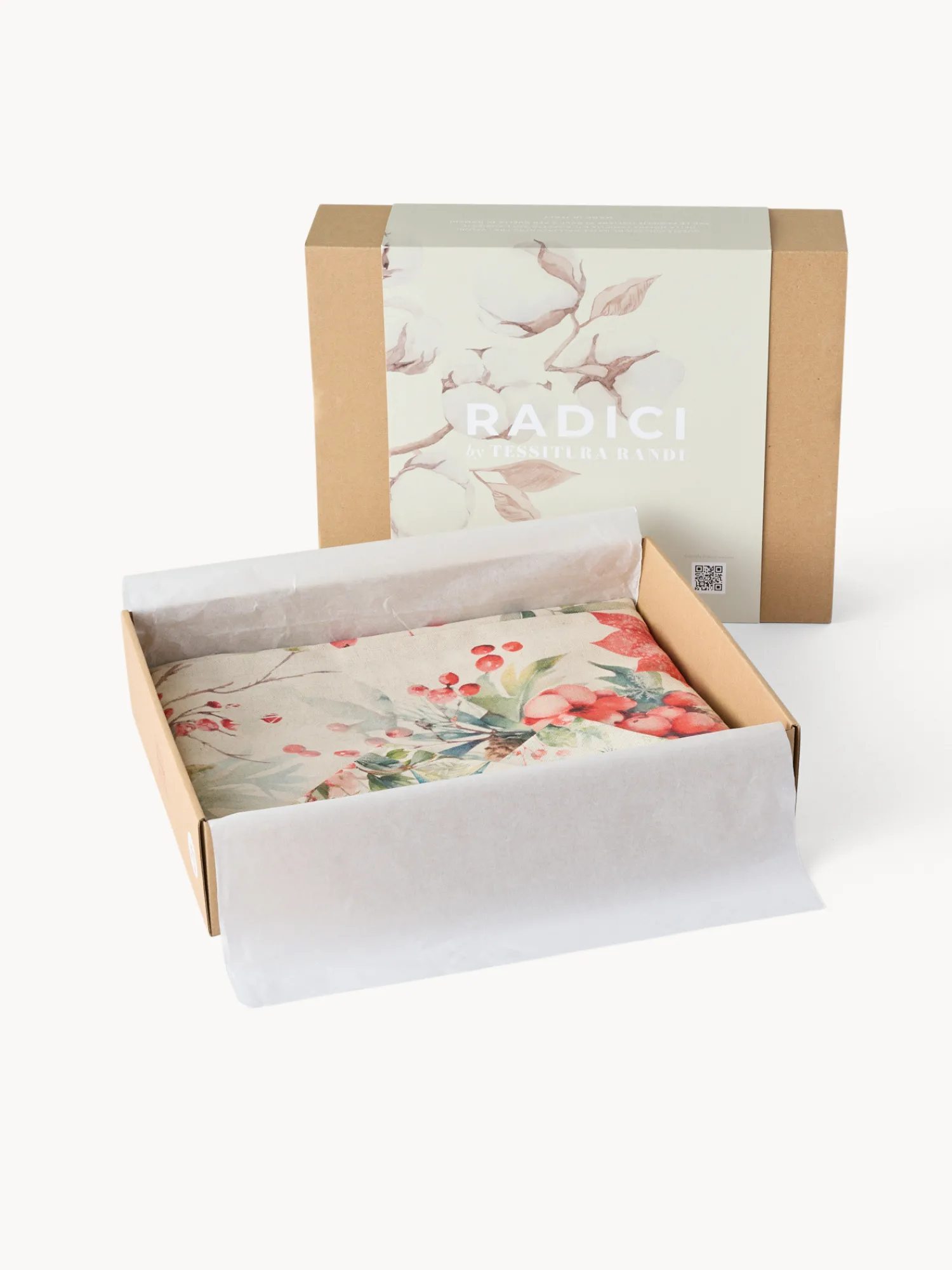 - Servizio Tavola “Bacche” per 8 persone by Tessitura Randi. Realizzato in pregiato drill di puro cotone stampato, questo servizio tavola comprende tovaglia e 8 tovaglioli coordinati, pensati per vestire la tavola con calore e stile durante le festività. Il raffinato motivo natalizio, arricchito da dettagli eleganti, trasforma ogni momento a tavola in un’esperienza speciale. 100% Made in Italy, è sinonimo di qualità, tradizione artigianale e cura nei dettagli.