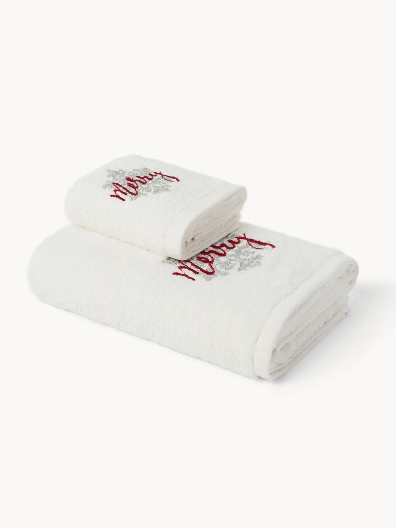 - Set natalizio composto da asciugamano ospite e viso (30×50+50×100) in spugna di puro cotone con fiocco di neve ricamato. Il regalo perfetto per un magico natale.