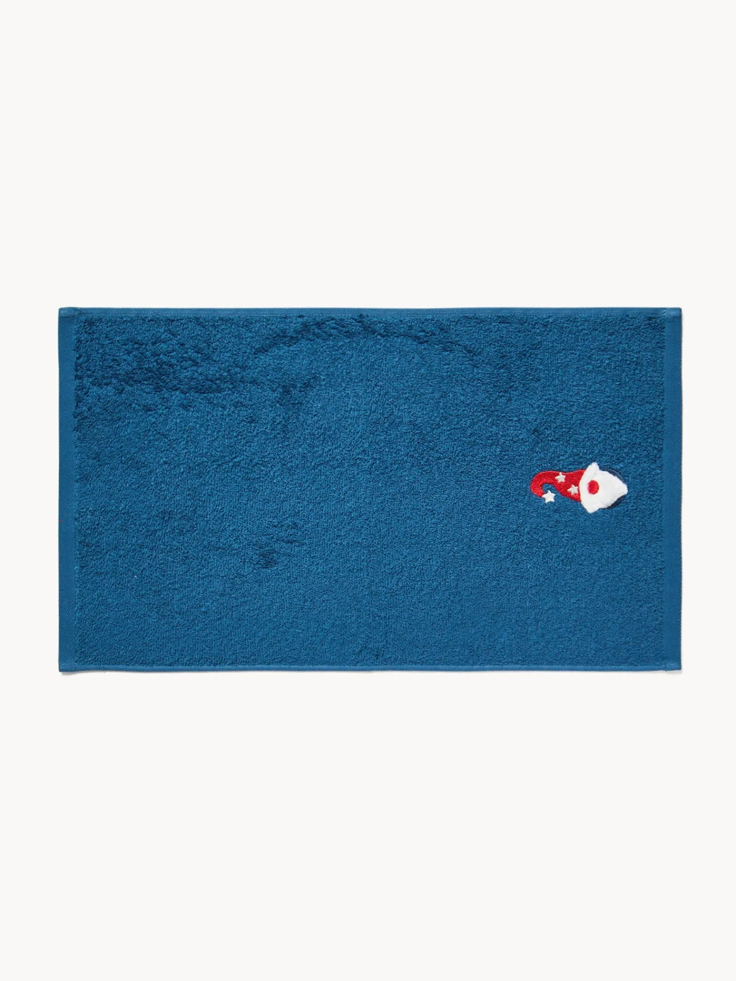 - Set natalizio composto da asciugamano ospite e viso (30×50+50×100) in spugna di puro cotone con ricamo gnomo natalizio su fondo blu. Il regalo perfetto per un magico natale.