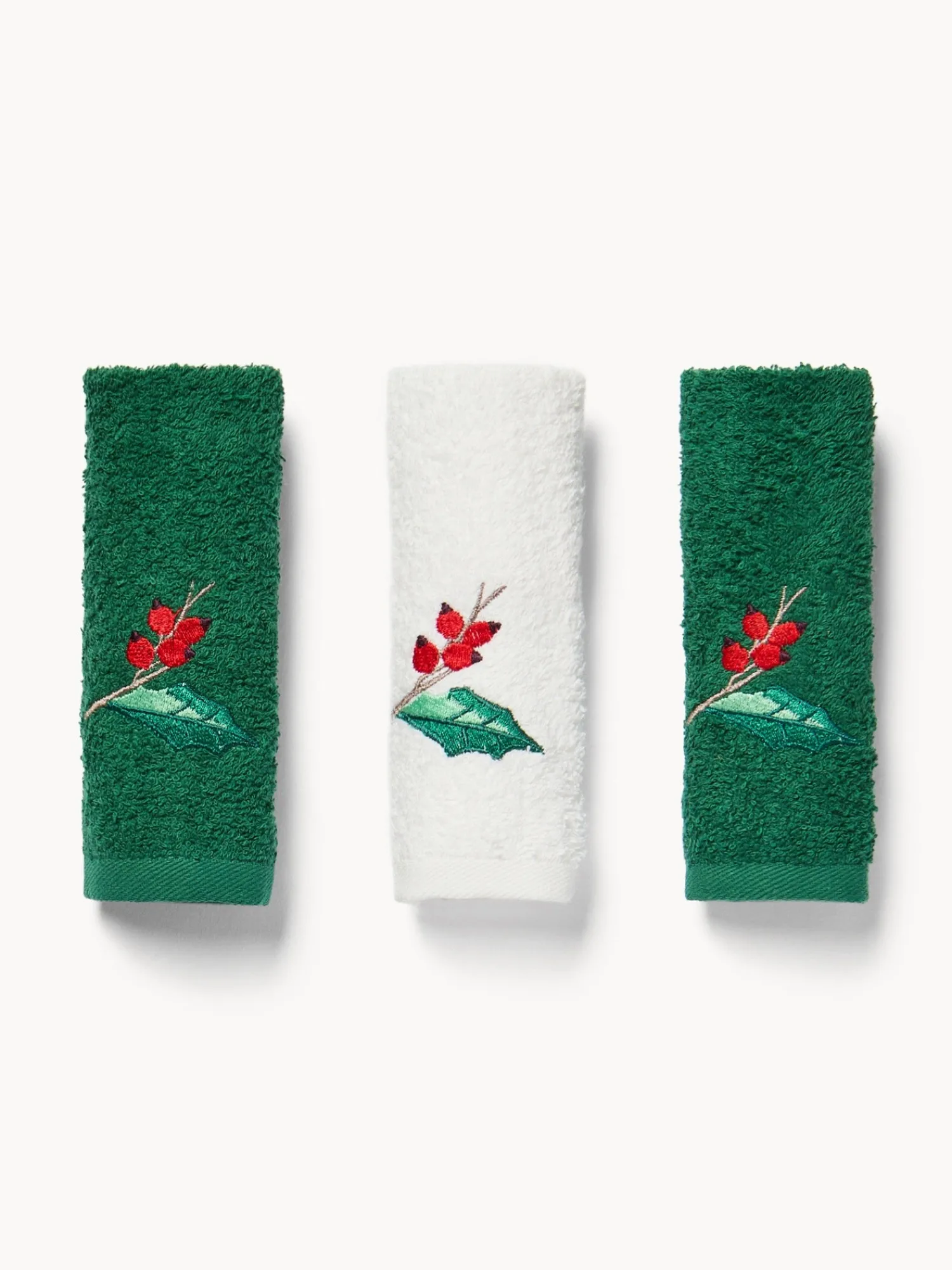 - Set 3 lavette (30×30) colorate in morbida spugna di cotone con ricamo natalizio